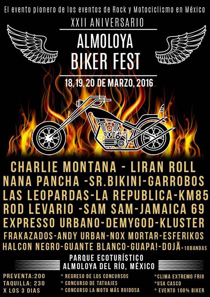 Durante 22 años la familia Galán ha logrado reunir en este Festival a artistas de talla internacional, como: El Tri, Maldita Vecindad y los Hijos del Quinto Patio, Inspector, Panteón Rococó, Brujería, Victimas del Dr. Cerebro, entre otros. En este 2015, el Almoloya Biker Fest presenta un cartel de lujo para complacer a todos los gustos, desde el extrovertido e irreverente Charlie Montana, Liran Roll lidereado por Toño Lira, Nana Pancha, Sam, Sam, Garrobos; ¡A mover la mata, a mover la mata, sacude el cráneo!, Sr. Bikini ¡Fuera Ropa! , Las Leopardas, Jamaica Sonora, entre muchas bandas más.