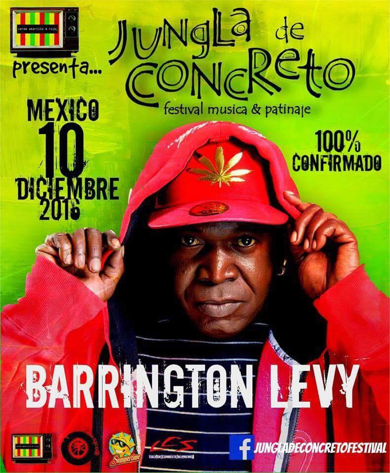 Los organizadores del Festival Jungla de Concreto, festival de música y patinaje, a celebrarse el 10 de diciembre en Cuautitlán Izcalli, Estado de México, confirmaron que el cantante jamaiquino Barrington Levy se presentará en dicho festival. Cabe mencionar que esta será la única fecha de Levy en nuestro país.