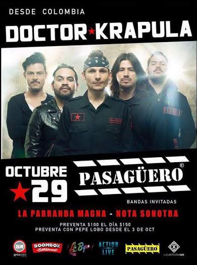 Los fans de la capital podrán brincar el próximo 29 de Octubre, Pasagüero donde compartirán escenario con La Parranda Magna y Nota Sonora los accesos tienen un costo de $100 pesos en preventa (Puesto de Pepe Lobo en el Tianguis Cultural del Chopo) o $150 el mismo día del evento en taquilla.