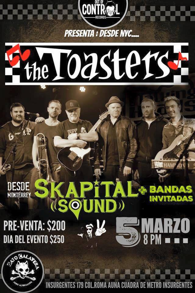 La banda neoyorkina de ska The Toasters visitará una vez más México, esta vez de una manera muy express, los representantes de la tercera ola del ska estadounidense pisarán el escenario del Gato Calavera el próximo cinco de marzo de la mano de Out of Control Records