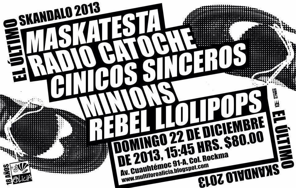 El Ultimo Skandalo 2013 en Multiforo Alicia Domingo 22 de Diciembre by Redaccion diciembre 18, 2013 Redaccion 0 Shares 0 Hora: 03:45 PMCover : $80Bandas:•►Maskatesta ••► Radio Catoche •••► Cínicos Sinceros••••► MINIONS•••••► Rebel Lollipop Tags Multiforo Alicia Feria Anual Santo Tomas Teoloyucan Viernes 20 de Diciembre Previous Article Jamaica 69 en Multiforo El Clandestino Sabado 28 de Diciembre Next Article