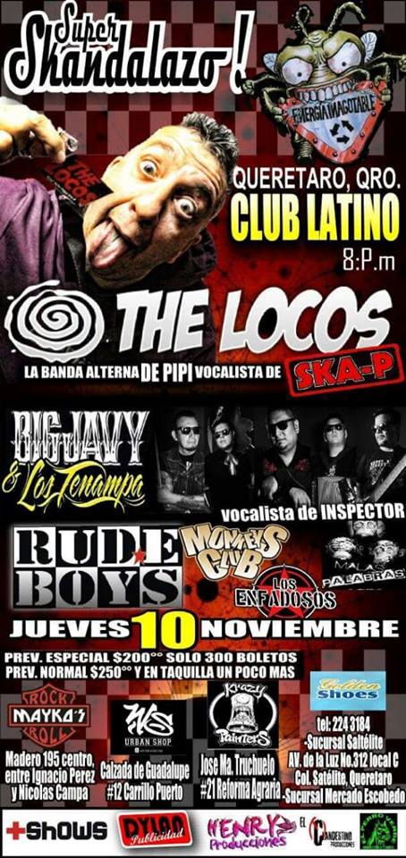 En su presentación en México Pipi, integrante de la también famosa agrupación SKA-P Juanan (trompeta), Fer (guitarra), Iván (batería), Tommy (bajo) y Borja (trombón), compartirán escenario con bandas como Rude Boys, La Parranda Magna, Hijos del Muerto, Jamaica Sonora, entre otras.