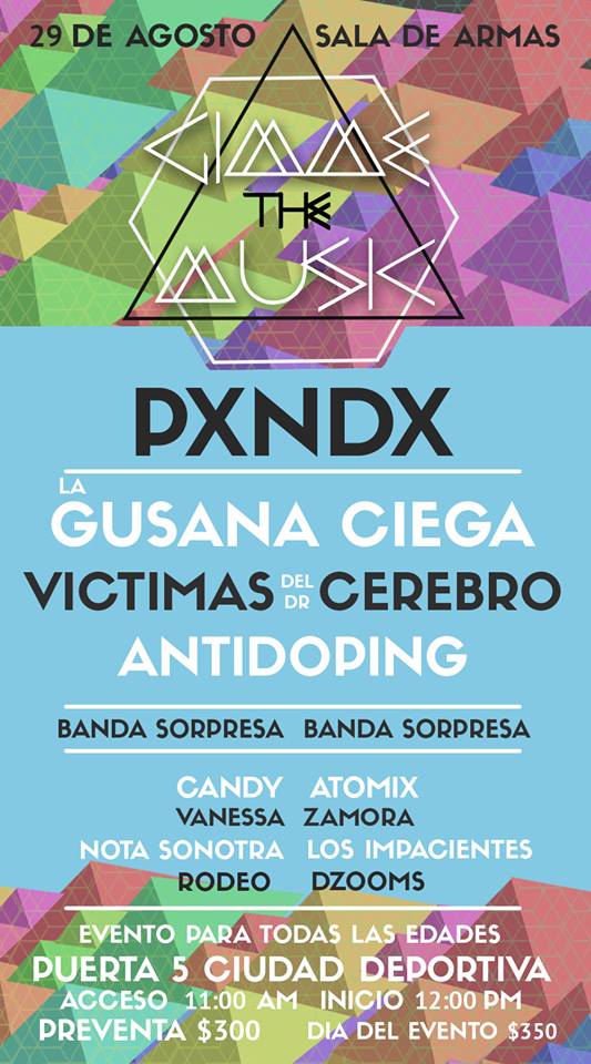 El 29 de agosto de este año  la Sala de Armas en Ciudad Deportiva, zona suroriente de la capital defeña, será testigo de la presentación de algunas de las bandas más representativas del rock y la música en español; se trata de nada más y nada menos que las legendarias Vicitmas del Dr. Cerebro, La Gusana Ciega, Atidoping y los regiomontanos de Pxndx, bandas nacionales que encabezan la lista del festival Gimme the music.