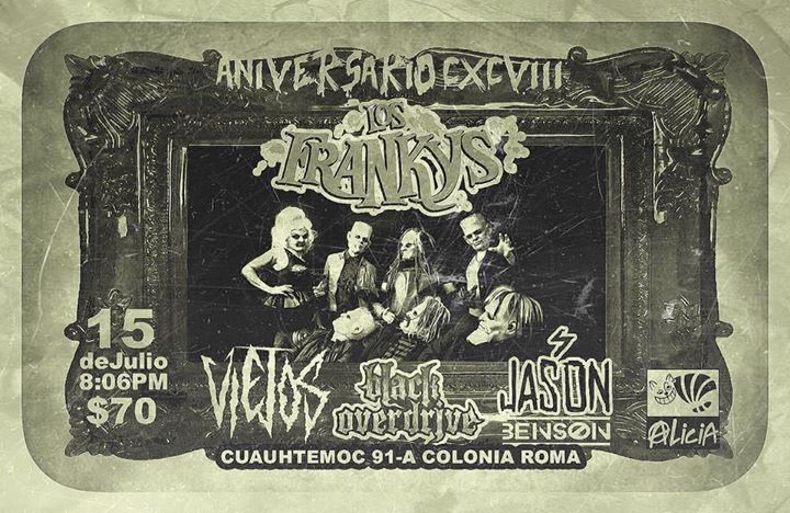 El Multiforo Cultural Alicia se viste de gala celebrando el Aniversario #198 de la banda de horror mexicano Los Frankys este viernes 15 de julio, donde compartirán escenario con bandas de la escena como Los Viejos, Black Overdrive, entre otros.