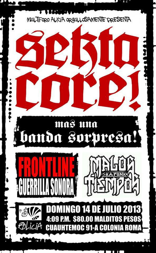 Sekta Core en Multiforo Alicia Domingo 14 de Julio by Redaccion julio 2, 2013 Redaccion 0 Shares 0 Hora:04:00 PMCover:$80 Tags Multiforo Alicia Titanes del Surf Tianguis Cultural del Chopo Sabado 06 de Julio Previous Article Macklarents Rocksteady Ska en La Vieja Scuela Sabado 27 de Julio Next Article