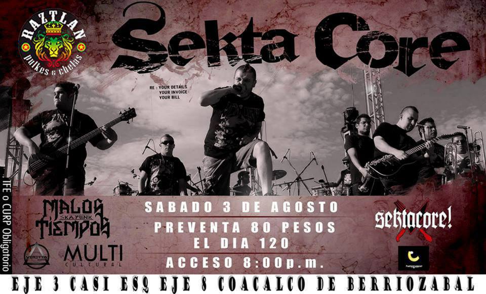 Sekta Core y Malos Tiempos Ska Punk en Raztlan Coacalco Sabado 03 de Agosto by Redaccion julio 30, 2013 Redaccion 0 Shares 0 Hora:08:00 PMCover: Pre: $80 Dia: $100 +IFE Pinchando Disco Rebel Party ♫Rockabilly Sabado 03 de Agosto Previous Article Republika Honor en Kaifanes Mezcal Rock Viernes 09 de Agotos Next Article