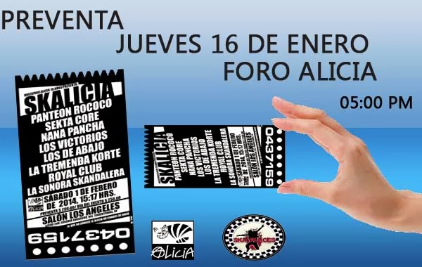 SkAlicia Preventa Este Jueves 16 de Enero 2014 by Redaccion enero 14, 2014 Redaccion 0 Shares 0 Hora: 05:00 PMLugar: Multiforo Alicia Tags Multiforo Alicia Melodycans en La Vieja Scuela y Multiforo Alicia Enero 2014 Previous Article Cancelan Canal de Youtube de Skachoco Next Article