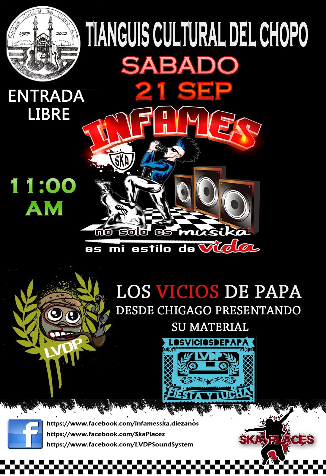 Tianguis Cultural del Chopo Preseta INFAMES SKA y Los Vicios De Papá Sabado 21 de Septiembre by Redaccion agosto 5, 2013 Redaccion 0 Shares 0 Hora: 11:00 AM Lugar: “Tianguis Cultural Del Chopo” Tags Tianguis Cultural del Chopo Teen Tops en Caradura Jueves 29 de Agosto Previous Article Neza Joven Fest Horarios Jueves 15 de Agosto Next Article