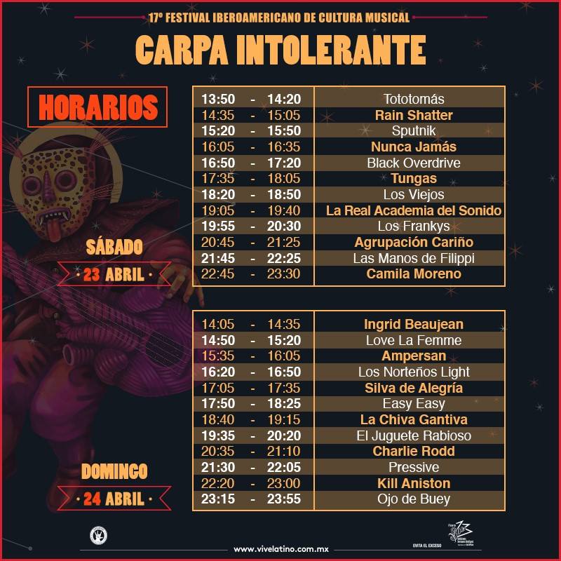 Horarios Carpa Intolerante